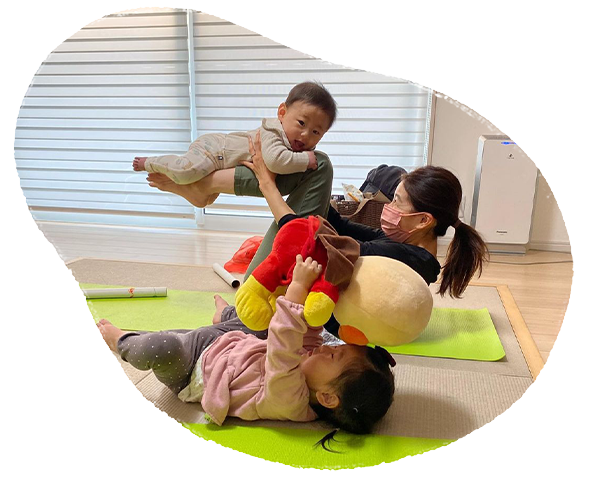 リズムに合わせて身体を動かして五感をたっぷり刺激!ベビー脳トレーニングや、身体可動域を広げたりして心と身体の土台作りをします。